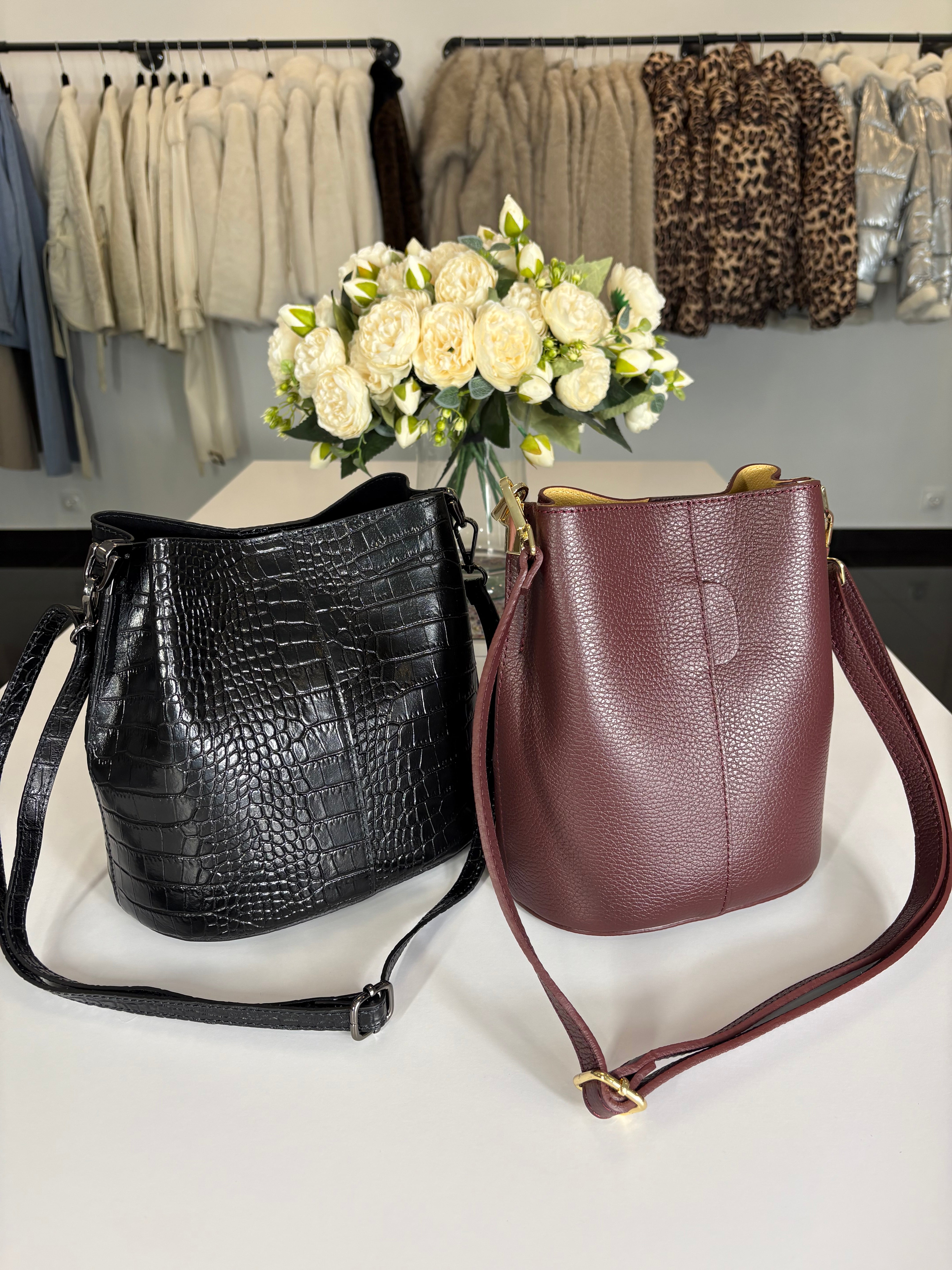 • Coloris disponibles : bordeaux lisse ou noir effet crocodile