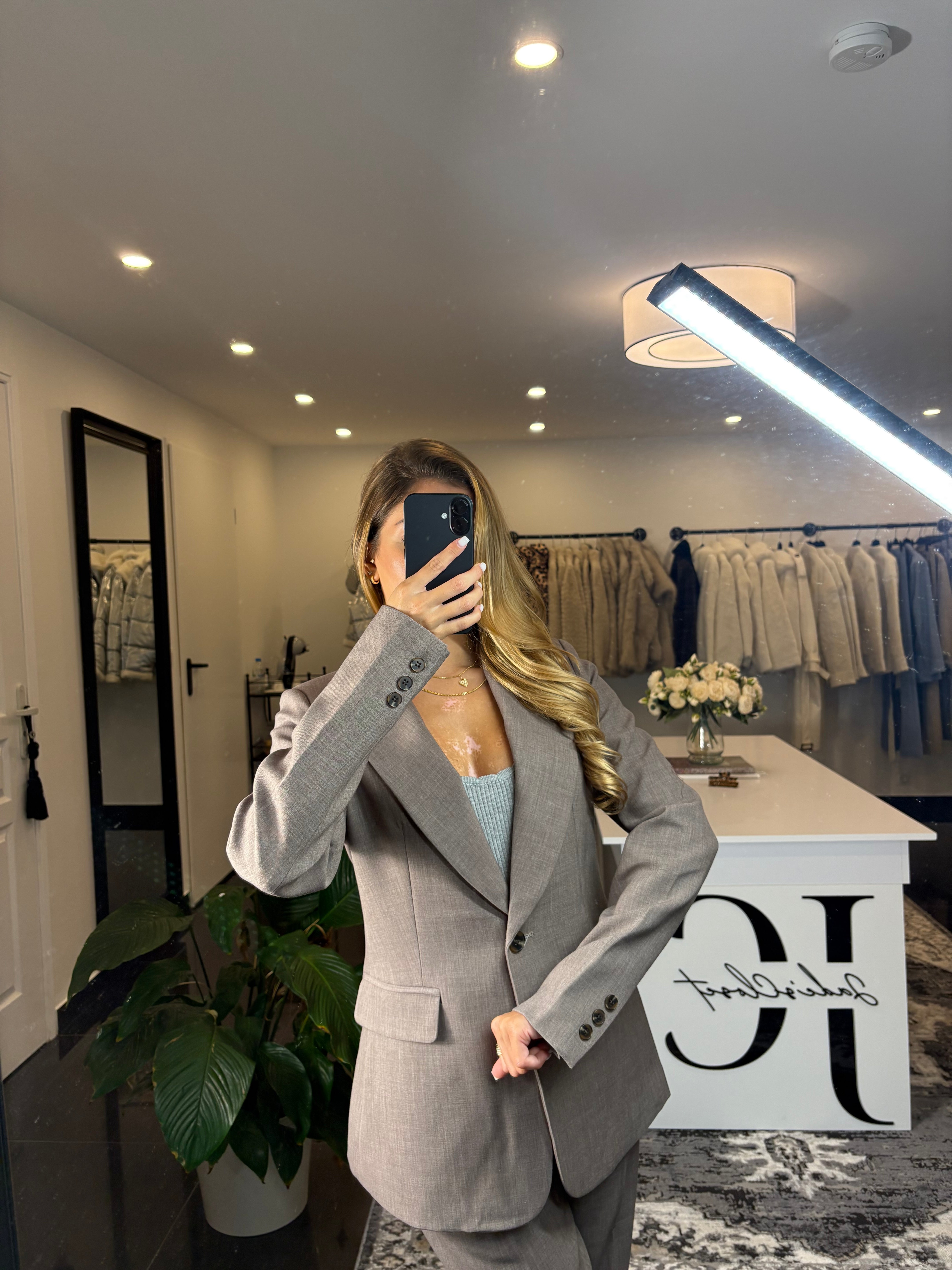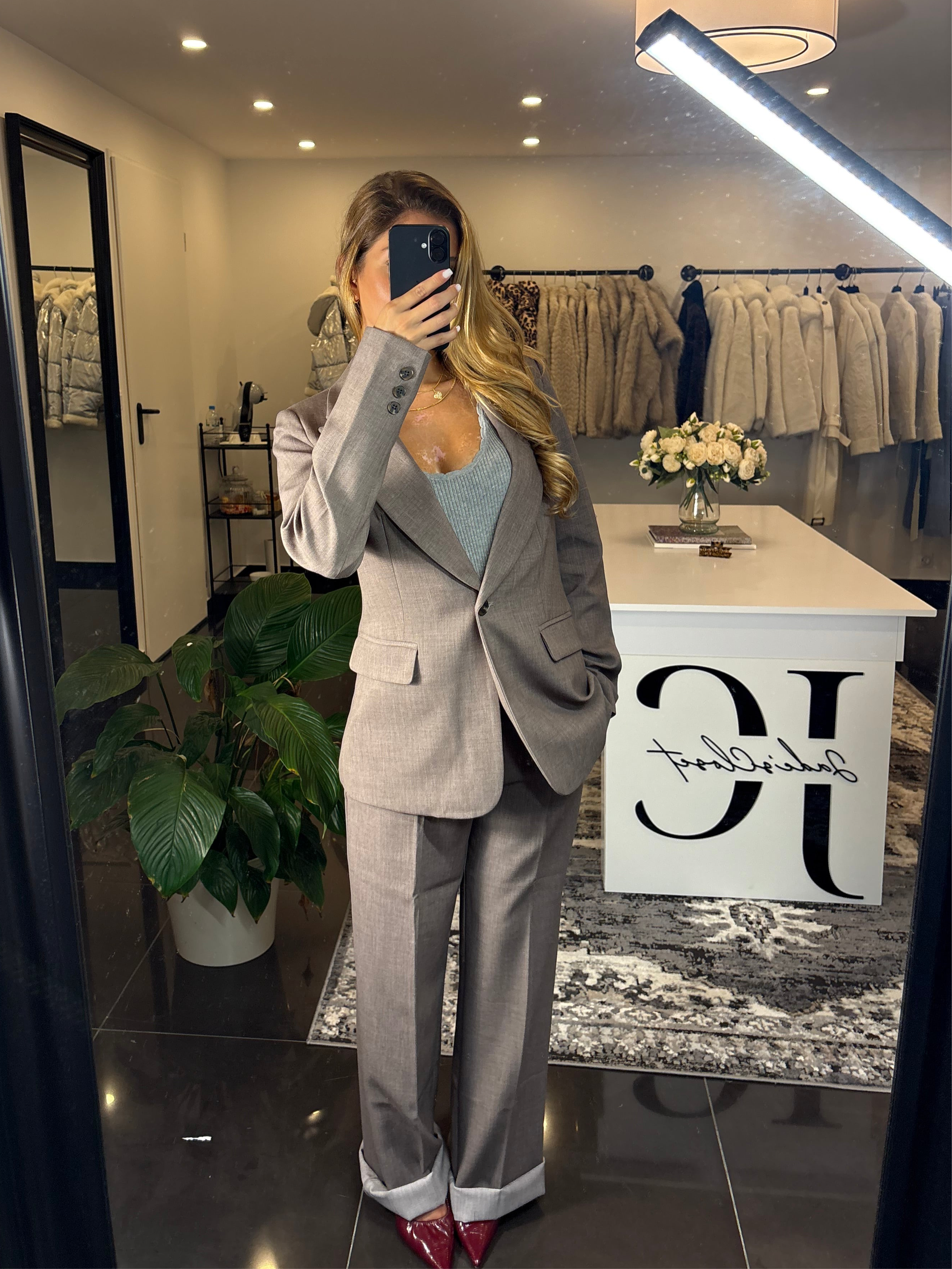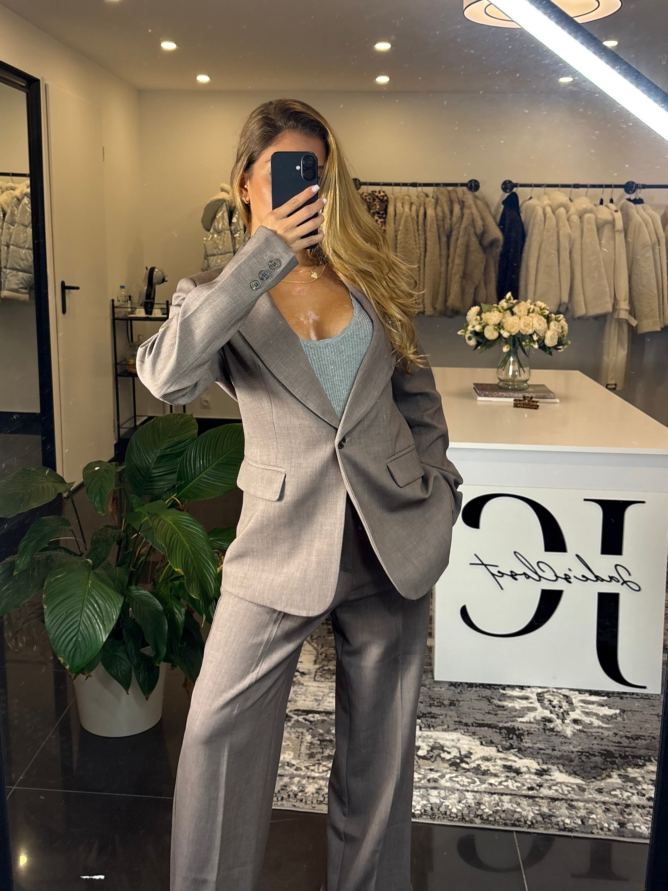 Élégant et intemporel, cet ensemble tailleur pantalon et veste est la pièce parfaite pour un look chic et structuré. Sa coupe moderne met en valeur la silhouette tout en offrant confort et aisance grâce à sa matière légèrement extensible. Idéal pour le bureau comme pour une sortie habillée.