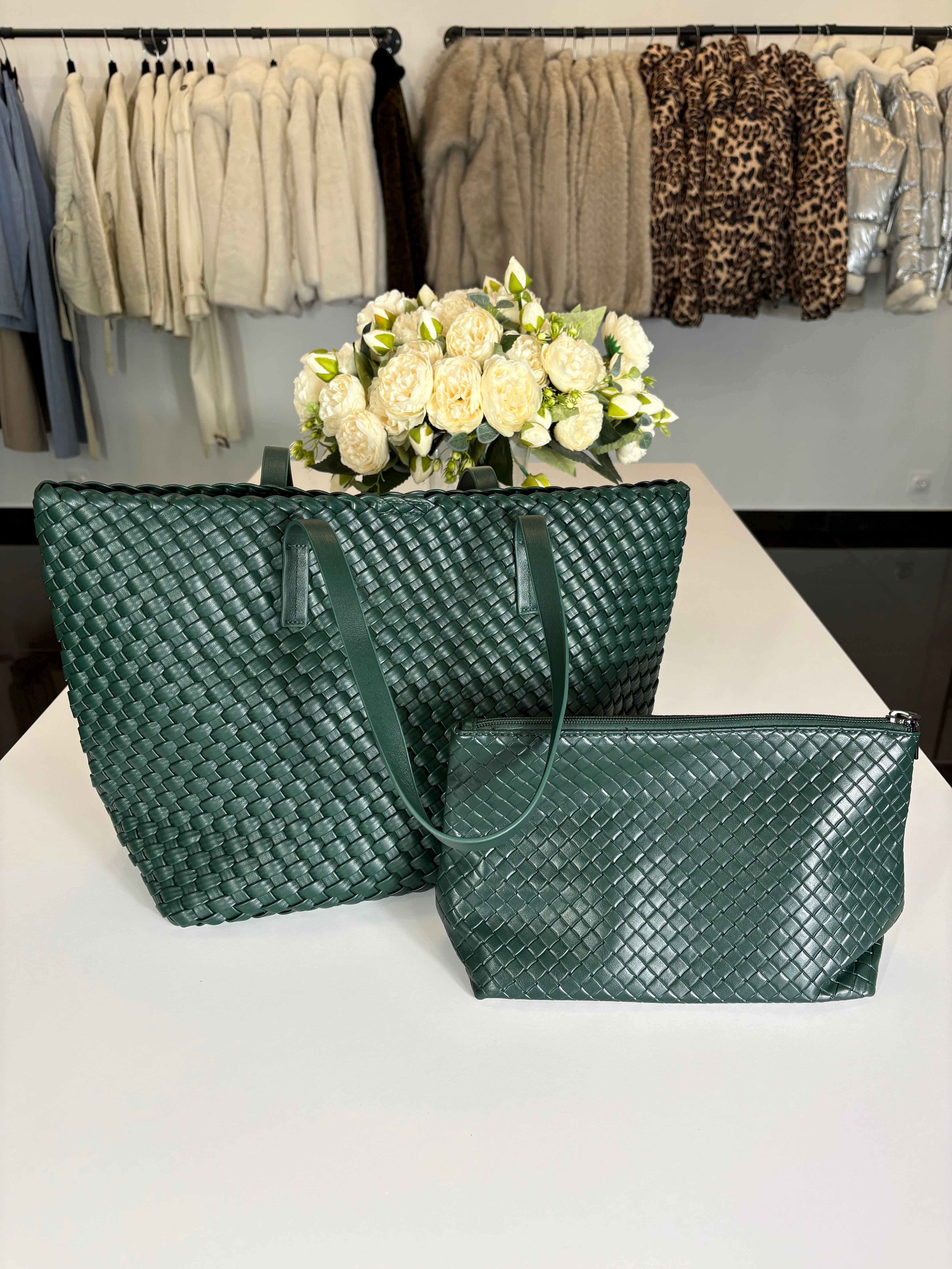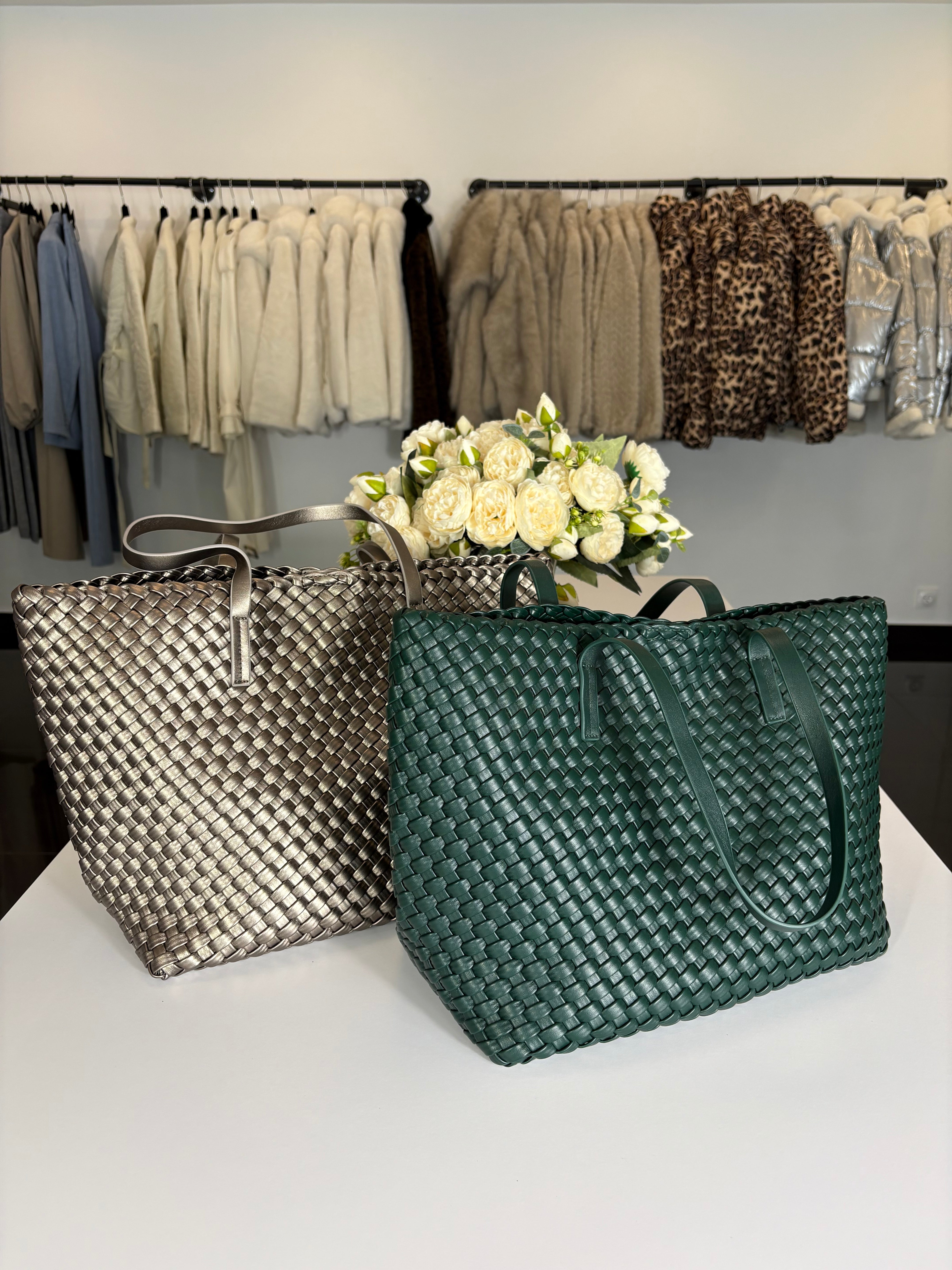 Pratique et élégant, ce sac cabas en simili cuir tressé est l’allié idéal du quotidien. Son grand format permet d’y glisser tous vos essentiels, tandis que sa finition métallisée lui apporte une touche moderne et tendance. Il est accompagné d’une pochette assortie, parfaite pour organiser vos affaires ou à porter seule.