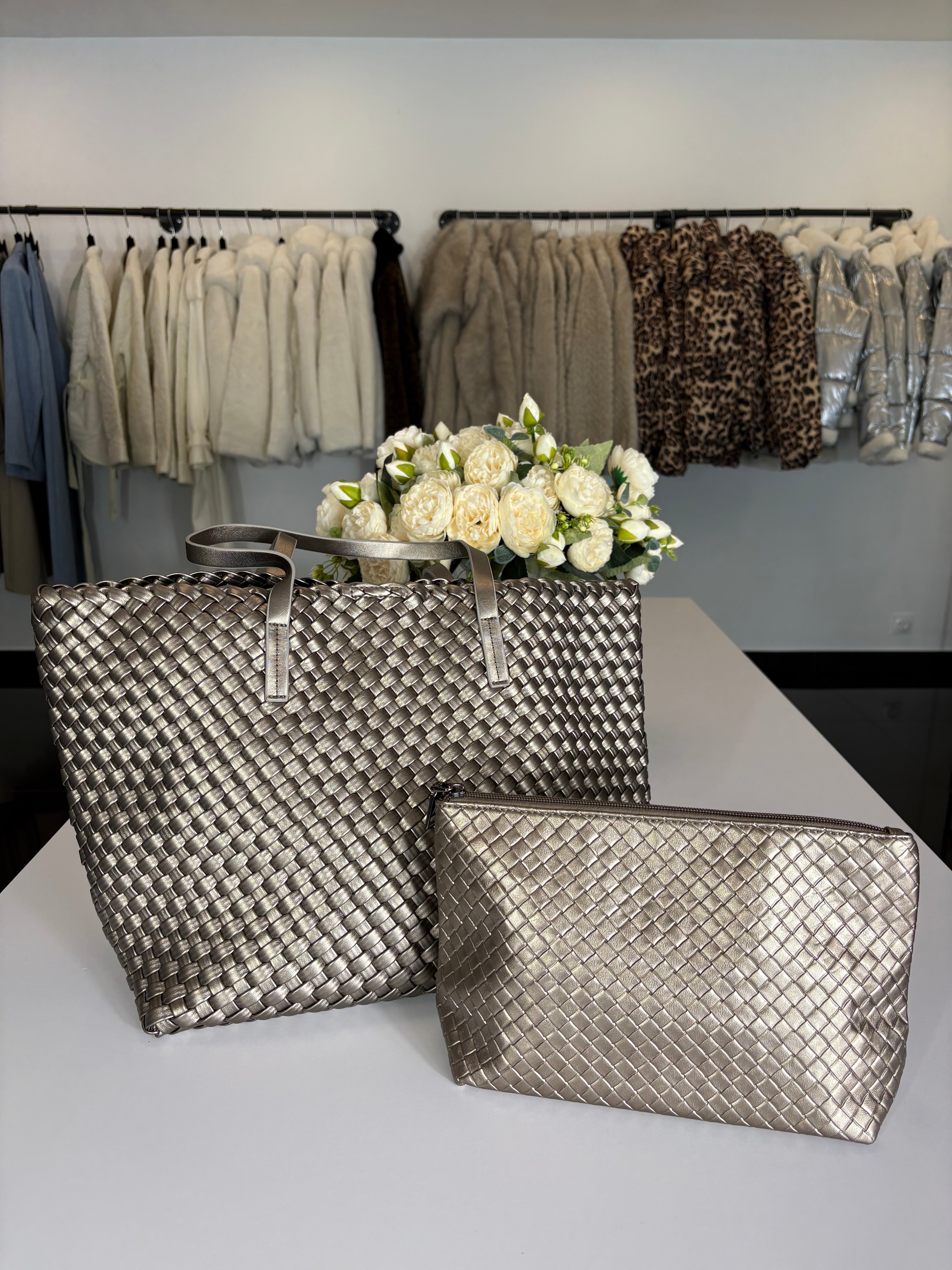 • Détails : effet tressé, anses solides, finition métallisée, livré avec une pochette intérieure assortie